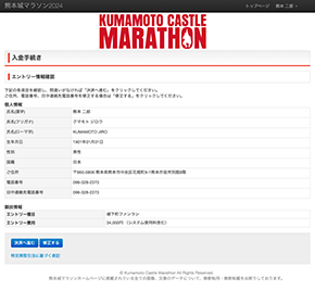 エントリー情報に間違いがなければ、<決済へ進む>をクリックして、決済方法選択画面に進む。