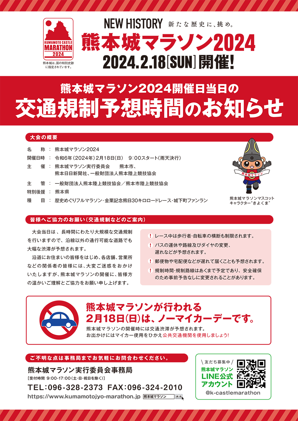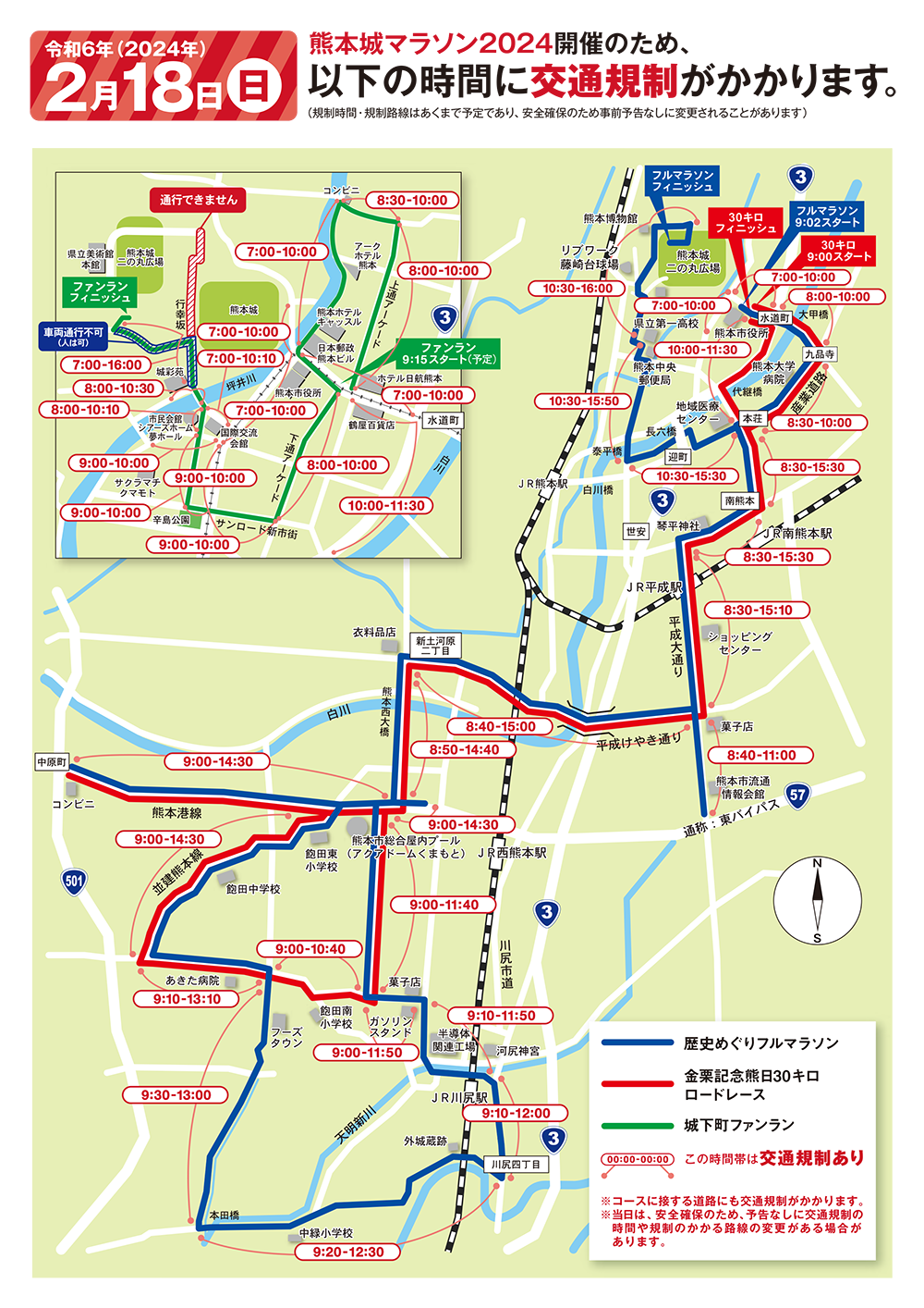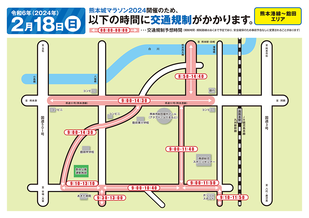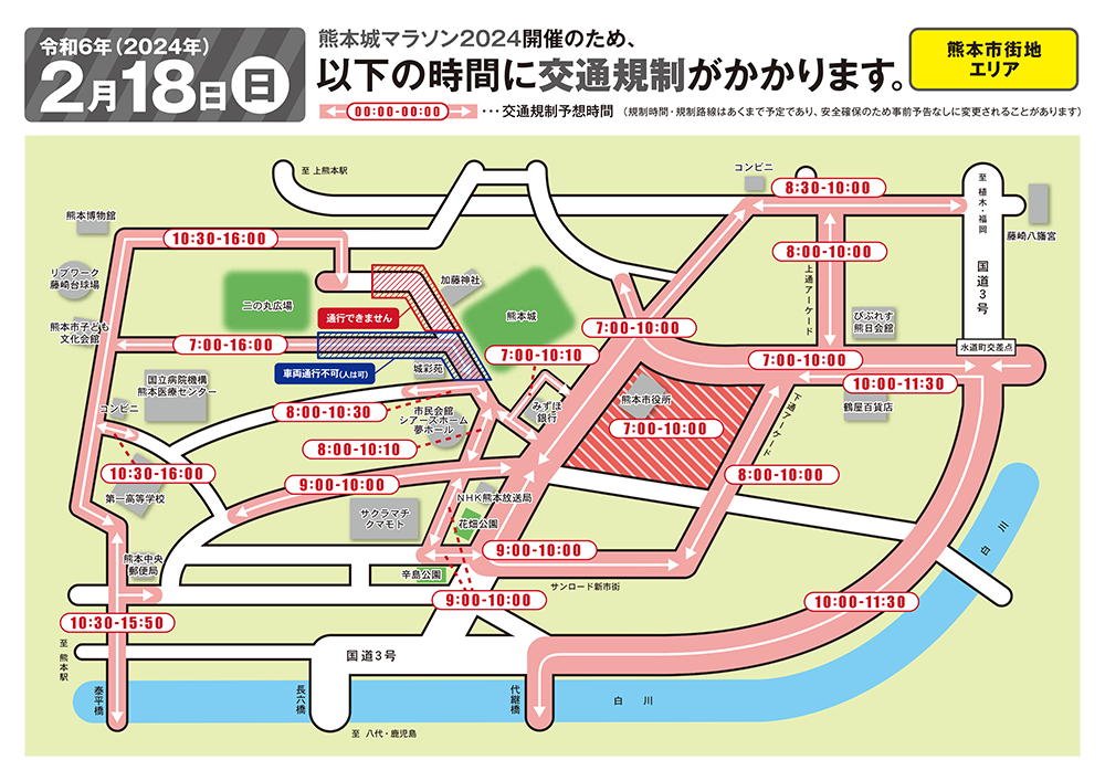 熊本城マラソン2024 開催日当日の交通規制予想時間のお知らせ