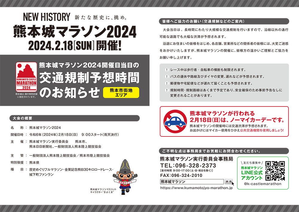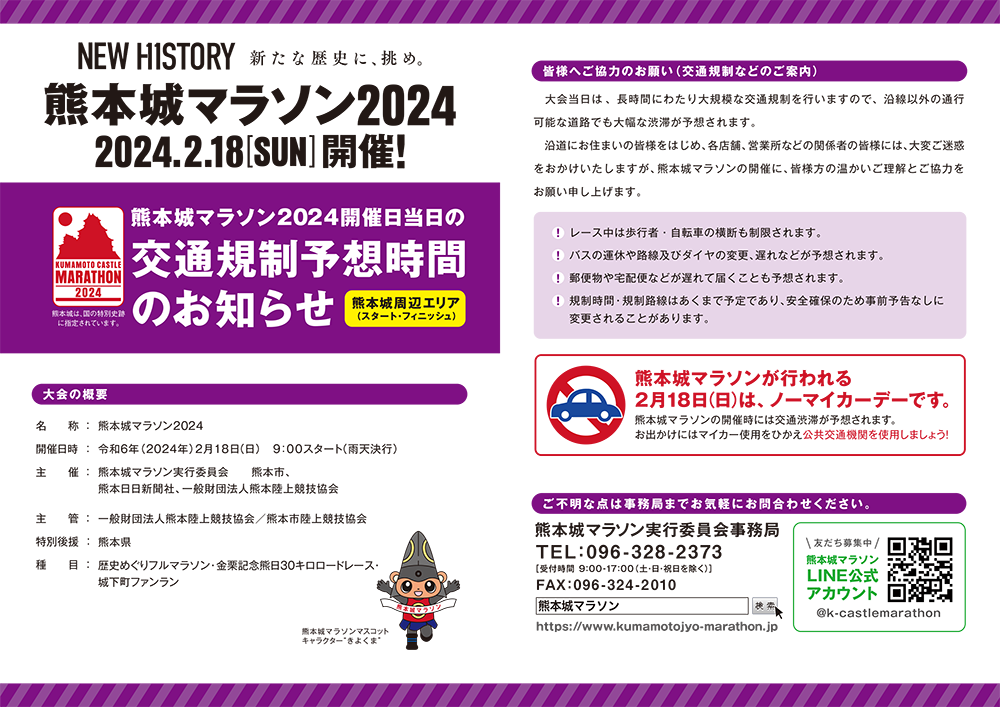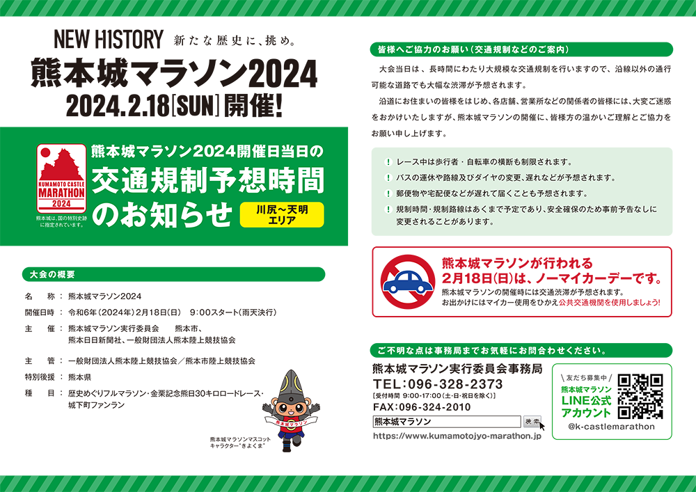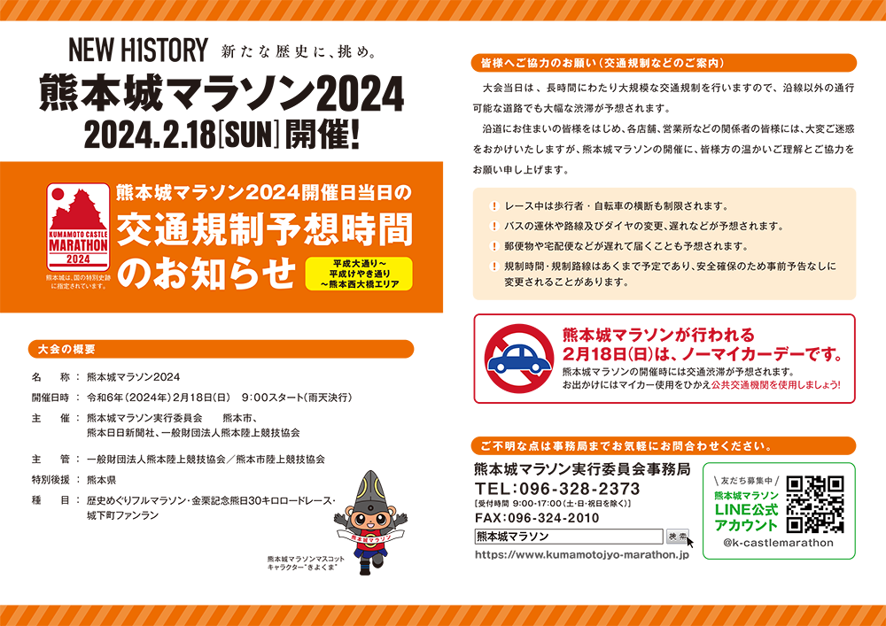 熊本城マラソン2024 開催日当日の交通規制予想時間のお知らせ