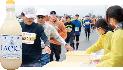 「酸乳飲料ラッキス(5,000食)」と焼き菓子(4,500食)を26.7km地点の給食ブースで提供します。