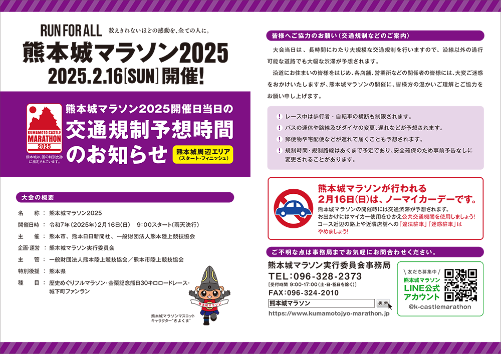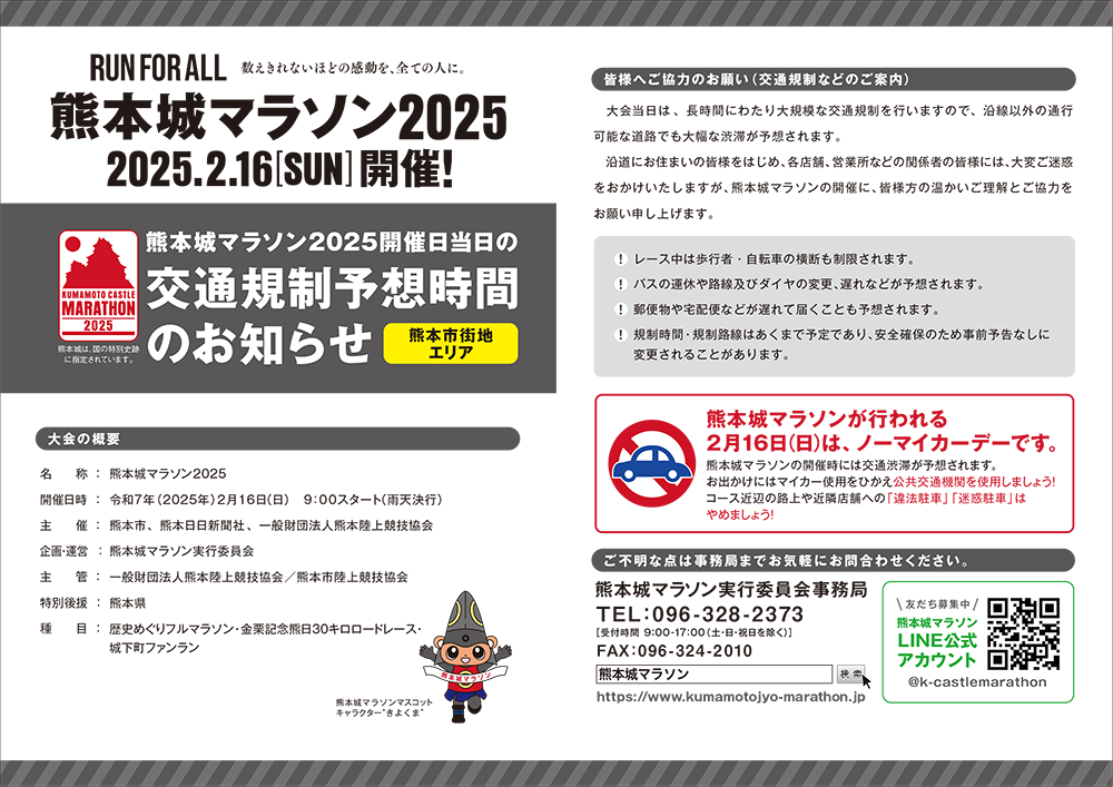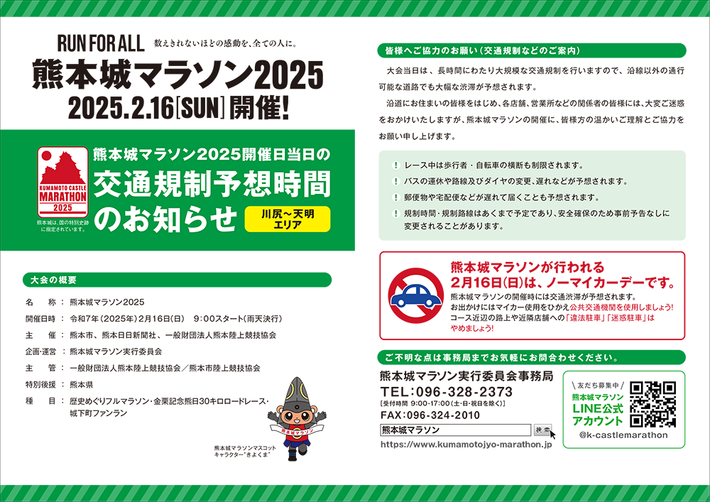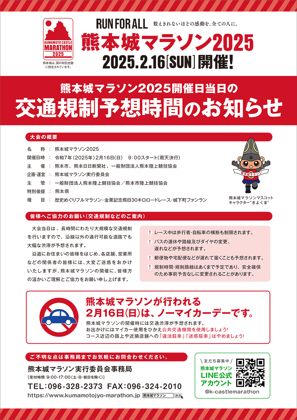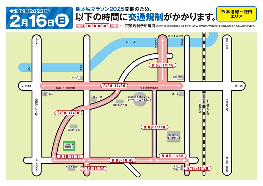 熊本城マラソン2025 開催日当日の交通規制予想時間のお知らせ
