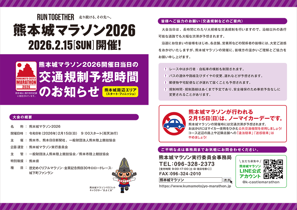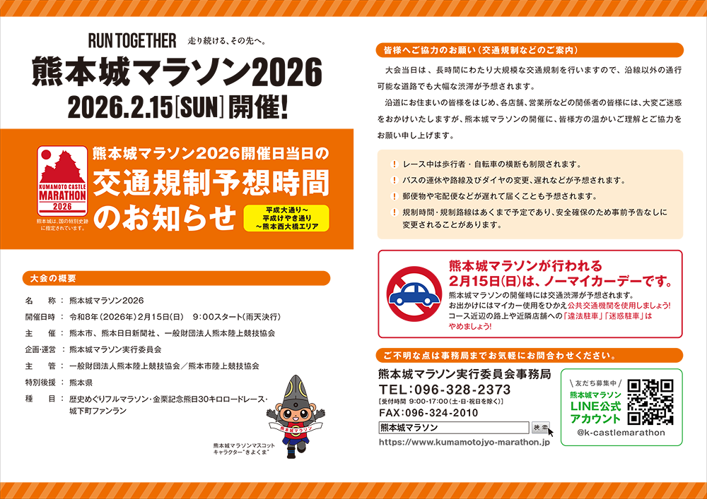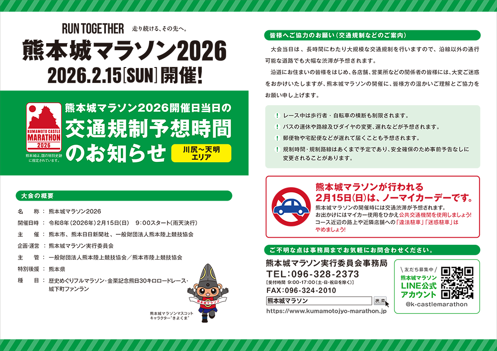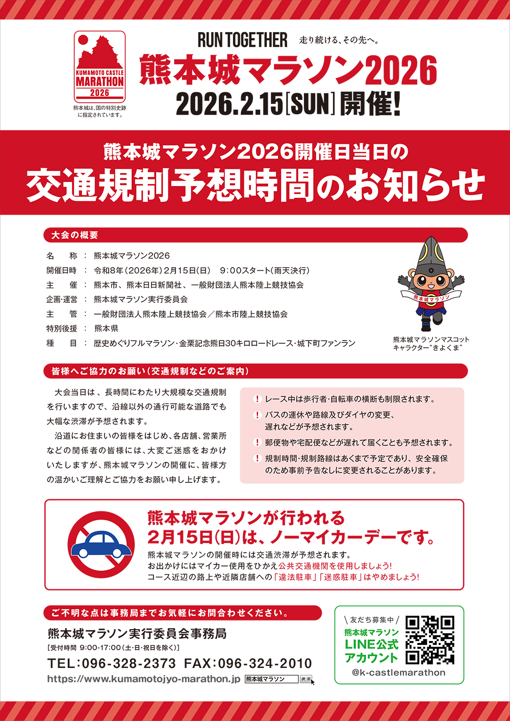 熊本城マラソン2026 開催日当日の交通規制予想時間のお知らせ